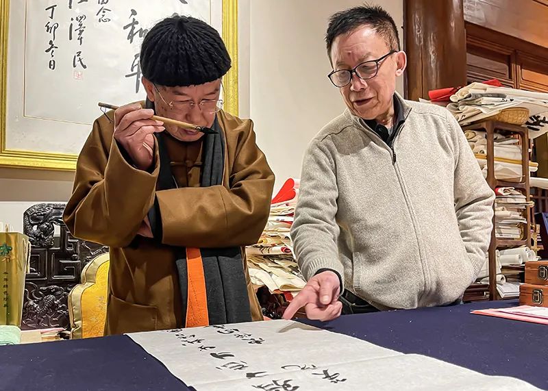 写这句话是有原因的。进门之后,照诚大和尚就说,今天日子特别:2022年2月2日,农历大年初二。茆帆老师也说,我们得以“二”为题。